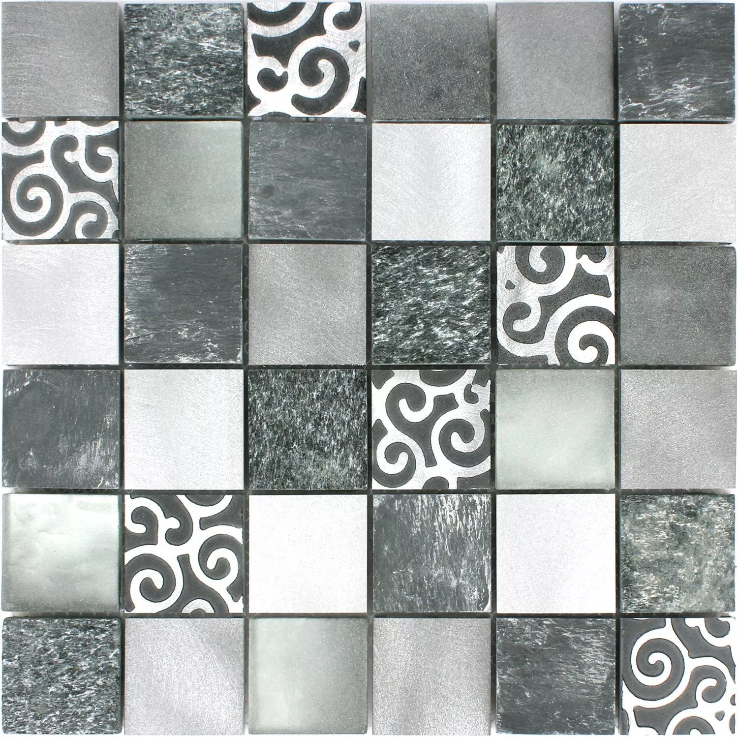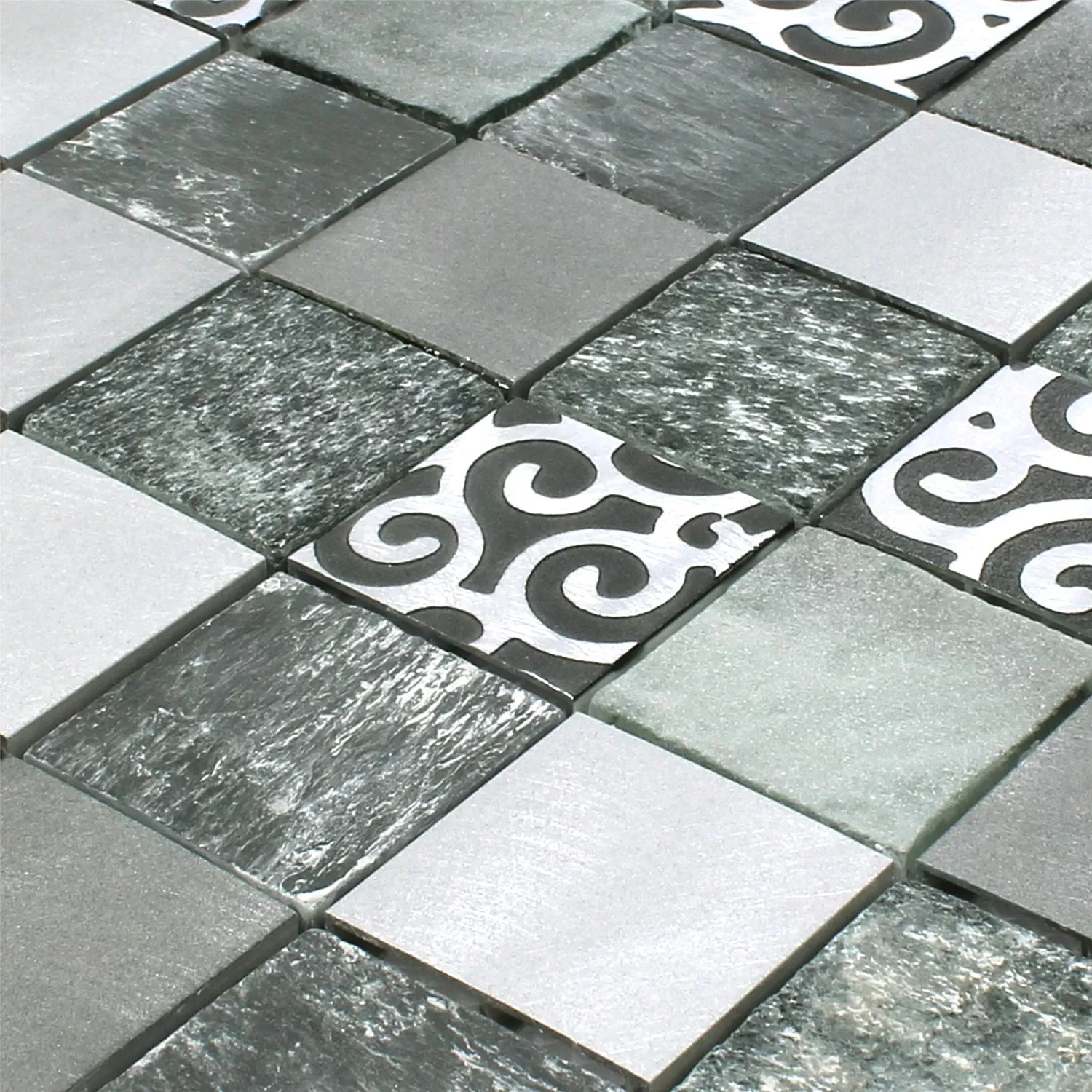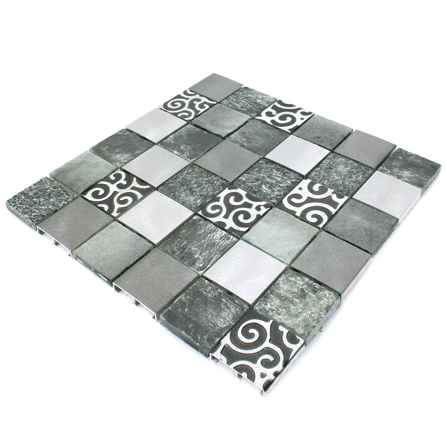 Sample Mosaic Tiles Glass Natural Stone Aluminium Valdivia Grey