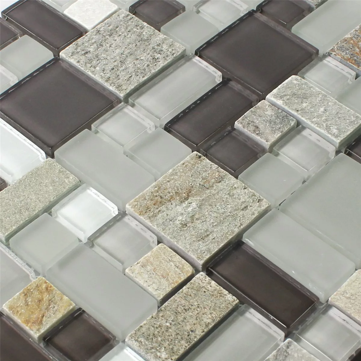 Sample Mosaic Tiles Glass Natural Stone Grey Brown