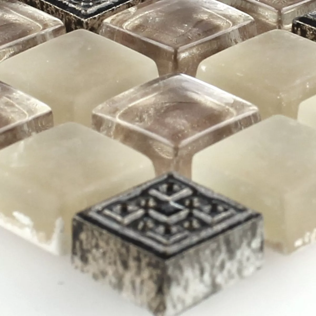 Sample Mosaic Tiles Glass Natural Stone Ornament Beige Mix