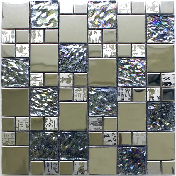 Sample Mosaic Tiles Glass Stainless Steel Metal Agypt Silver