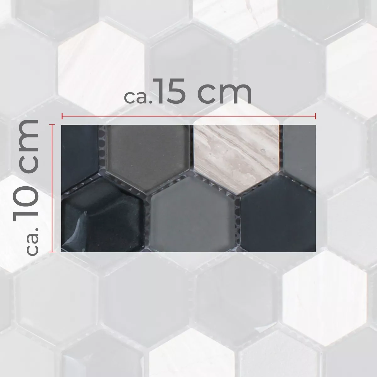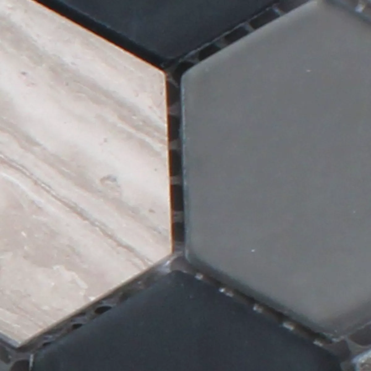 Sample Mosaic Tiles Hexagon Glass Natural Stone Black Grey 3D