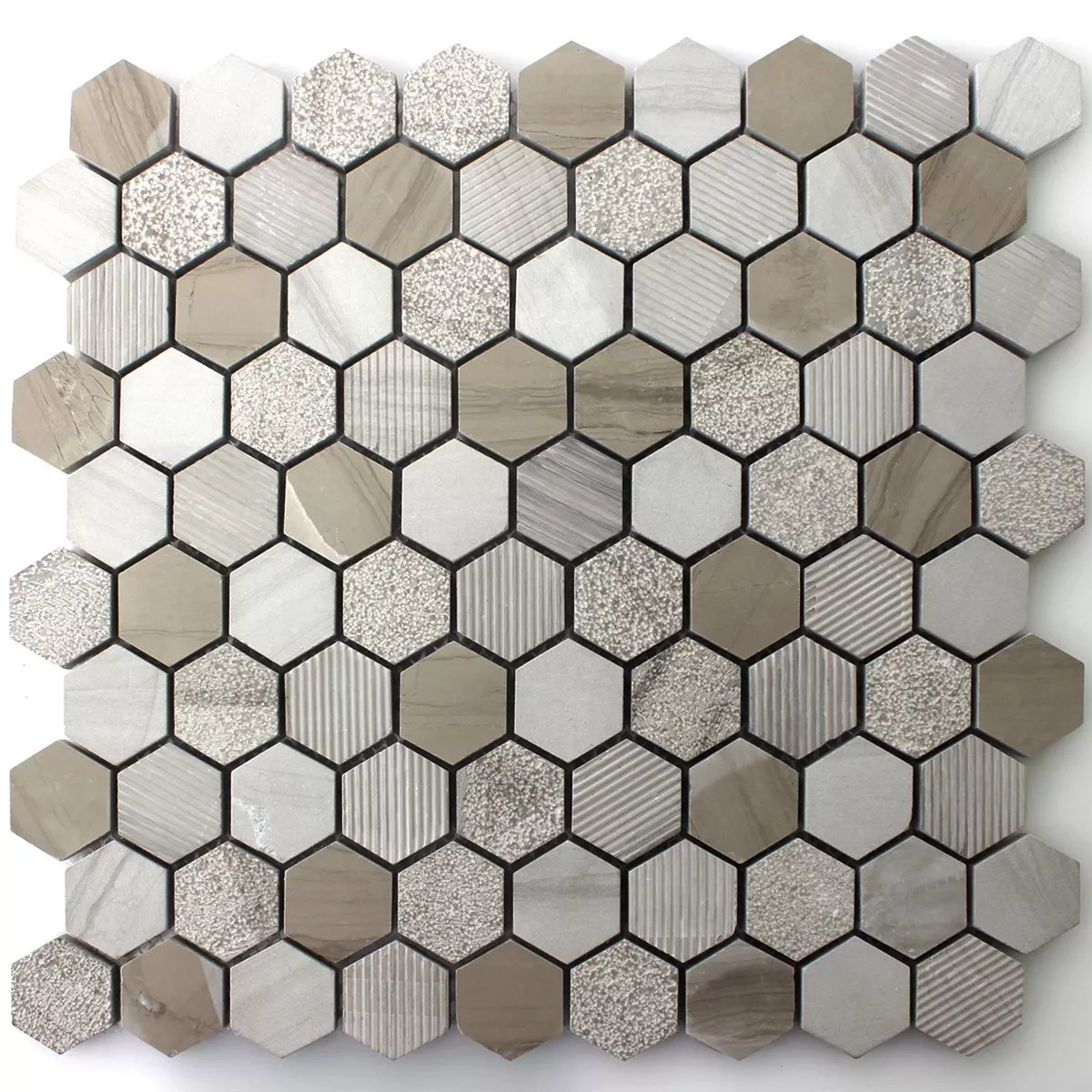 Sample Mosaic Tiles Hexagon Natural Stone Mocca Brown