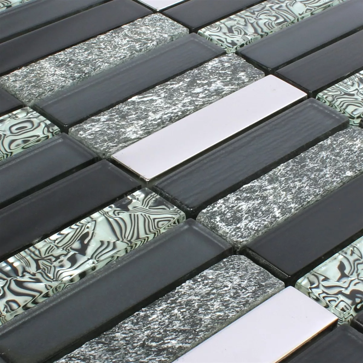 Sample Mosaic Tiles Magia Glass Natural Stone Mix Black