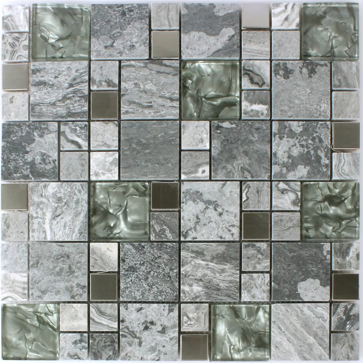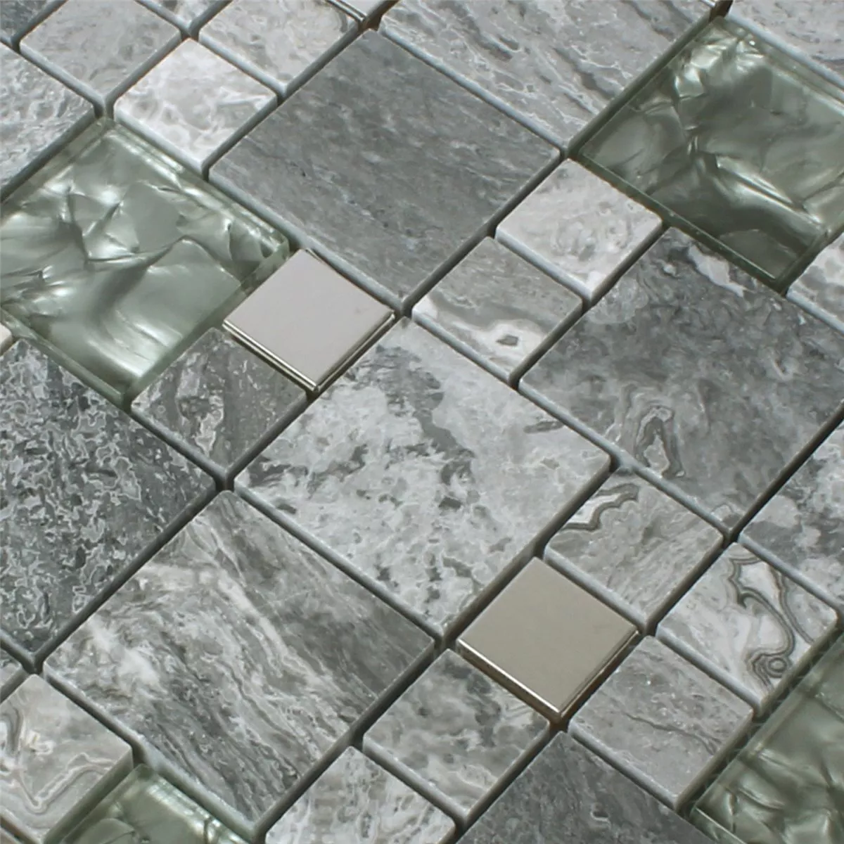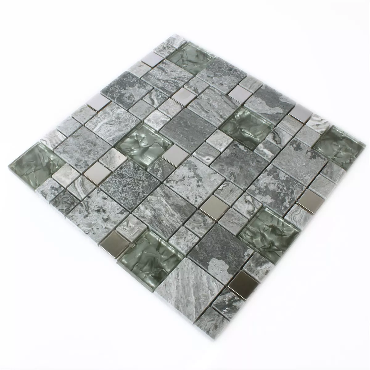 Sample Mosaic Tiles Metal Glass Natural Stone Mix Grey Silver