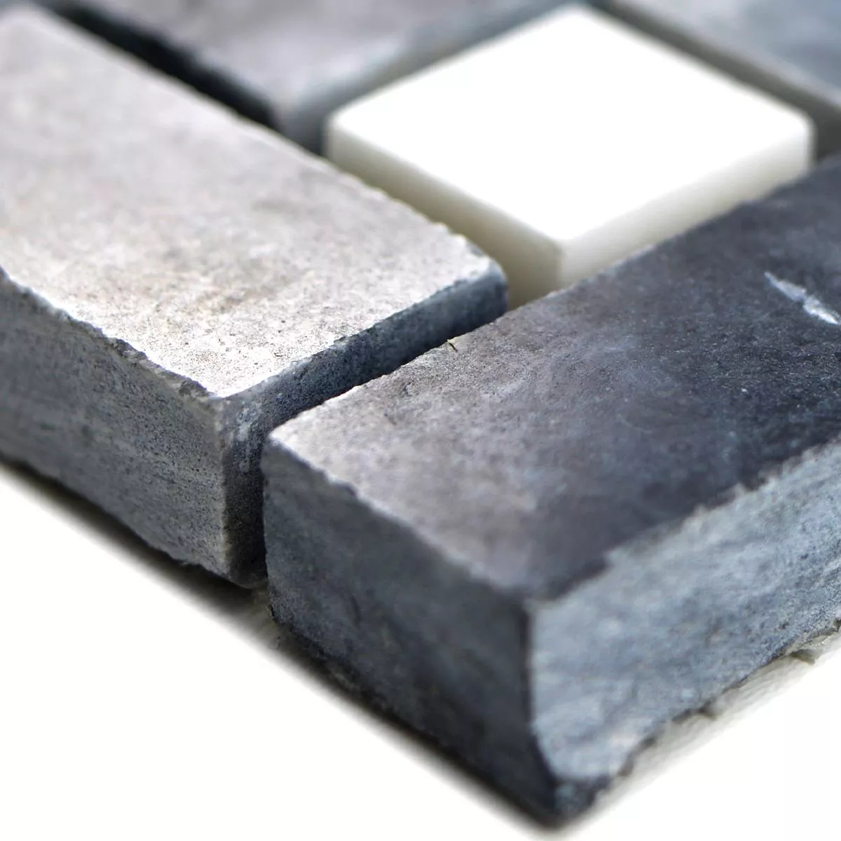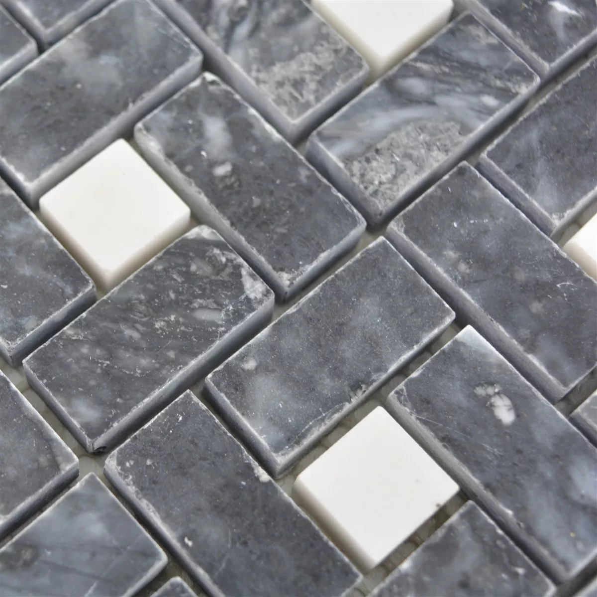 Sample Natural Stone Marble Mosaic Tiles Umay Black White