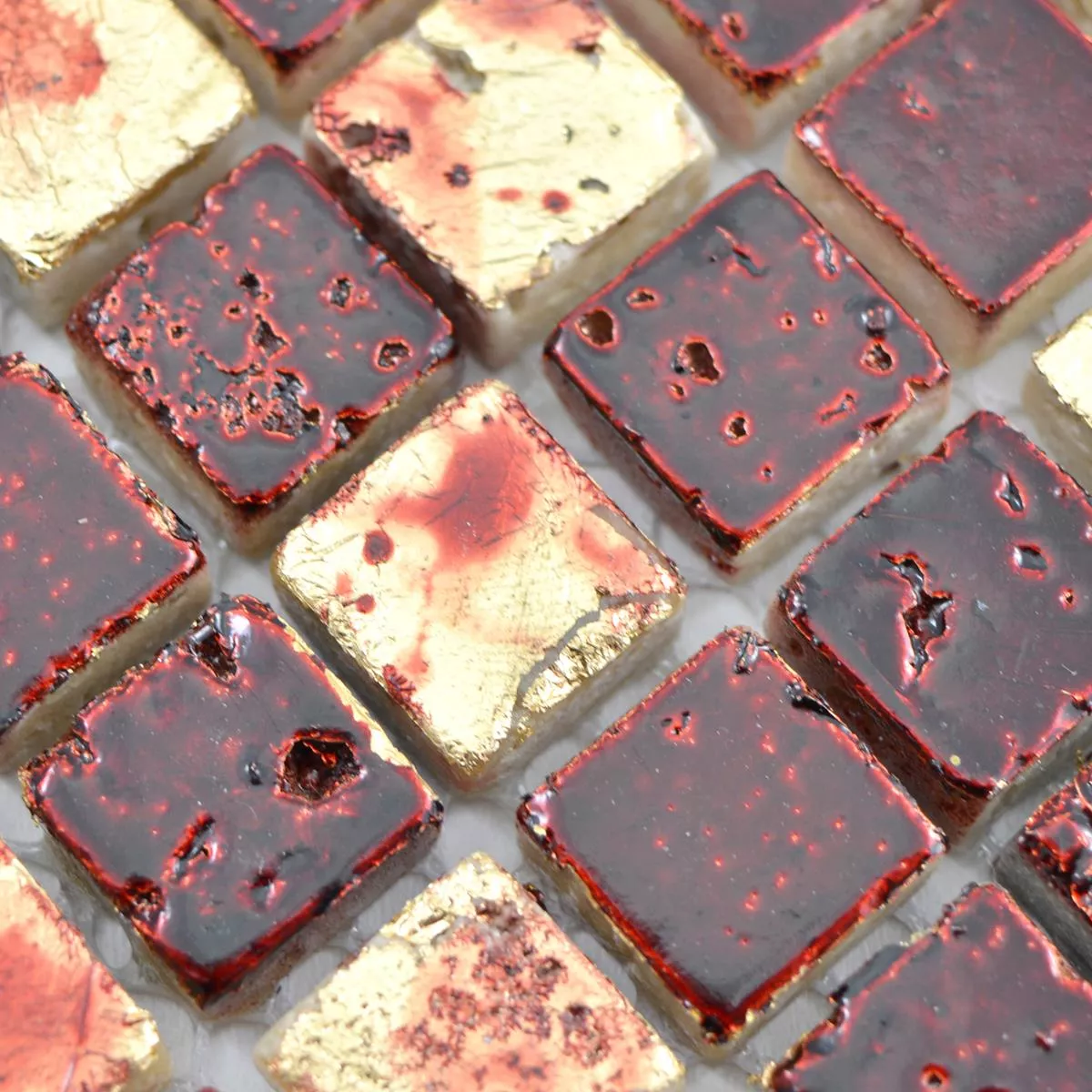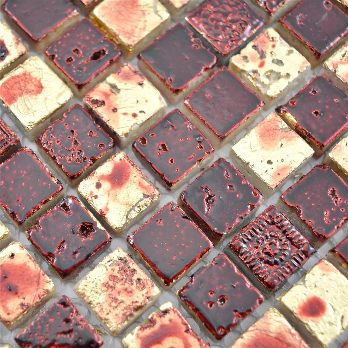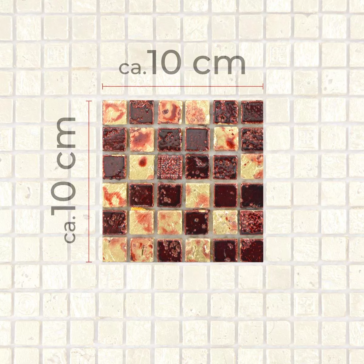 Sample Natural Stone Resin Mosaic Tiles Lucky Gold Red