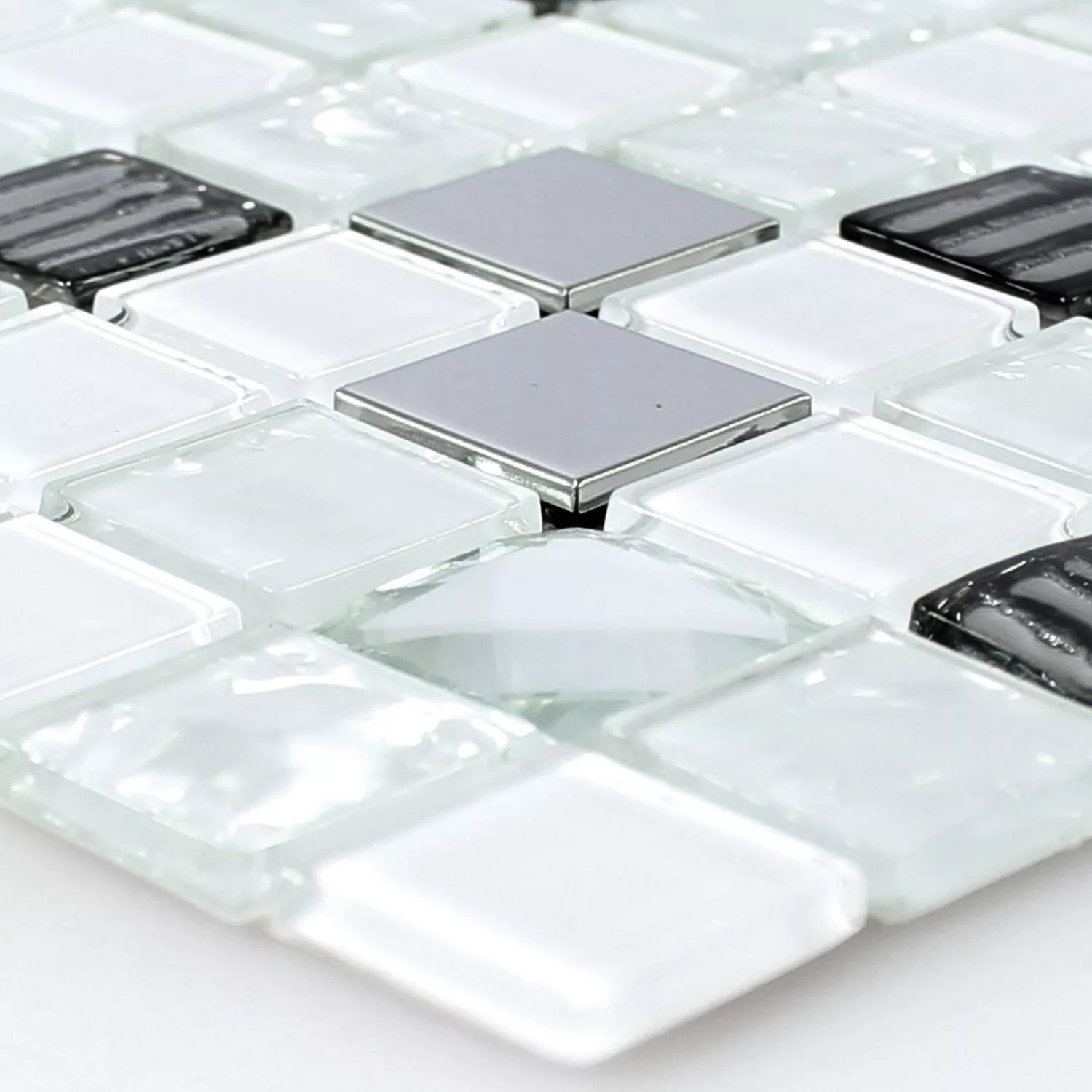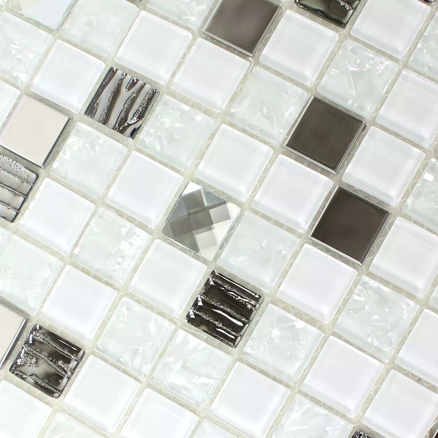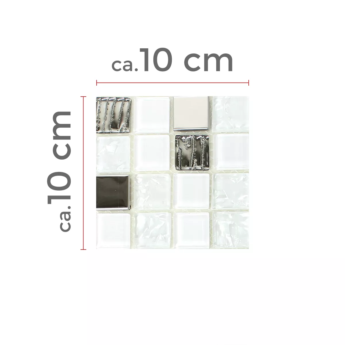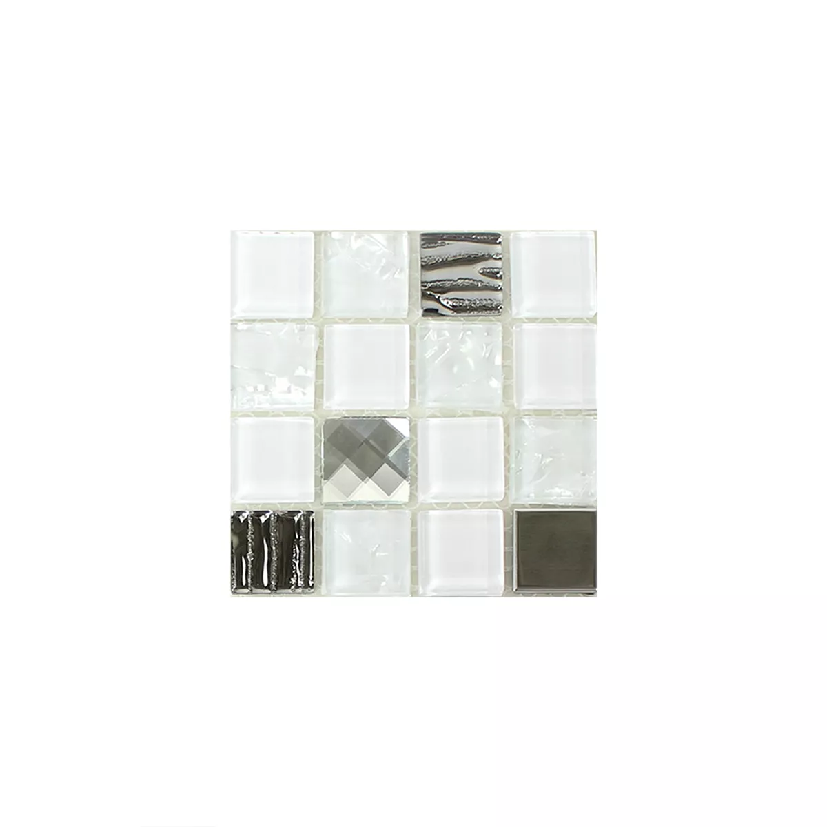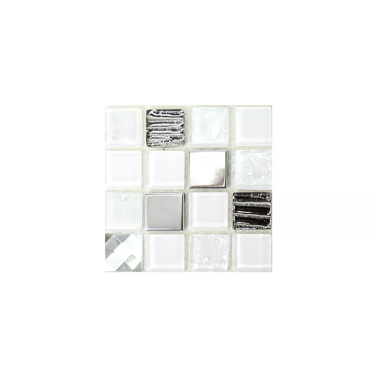 Sample Self Adhesive Glass Stainless Steel Mosaic White Silver