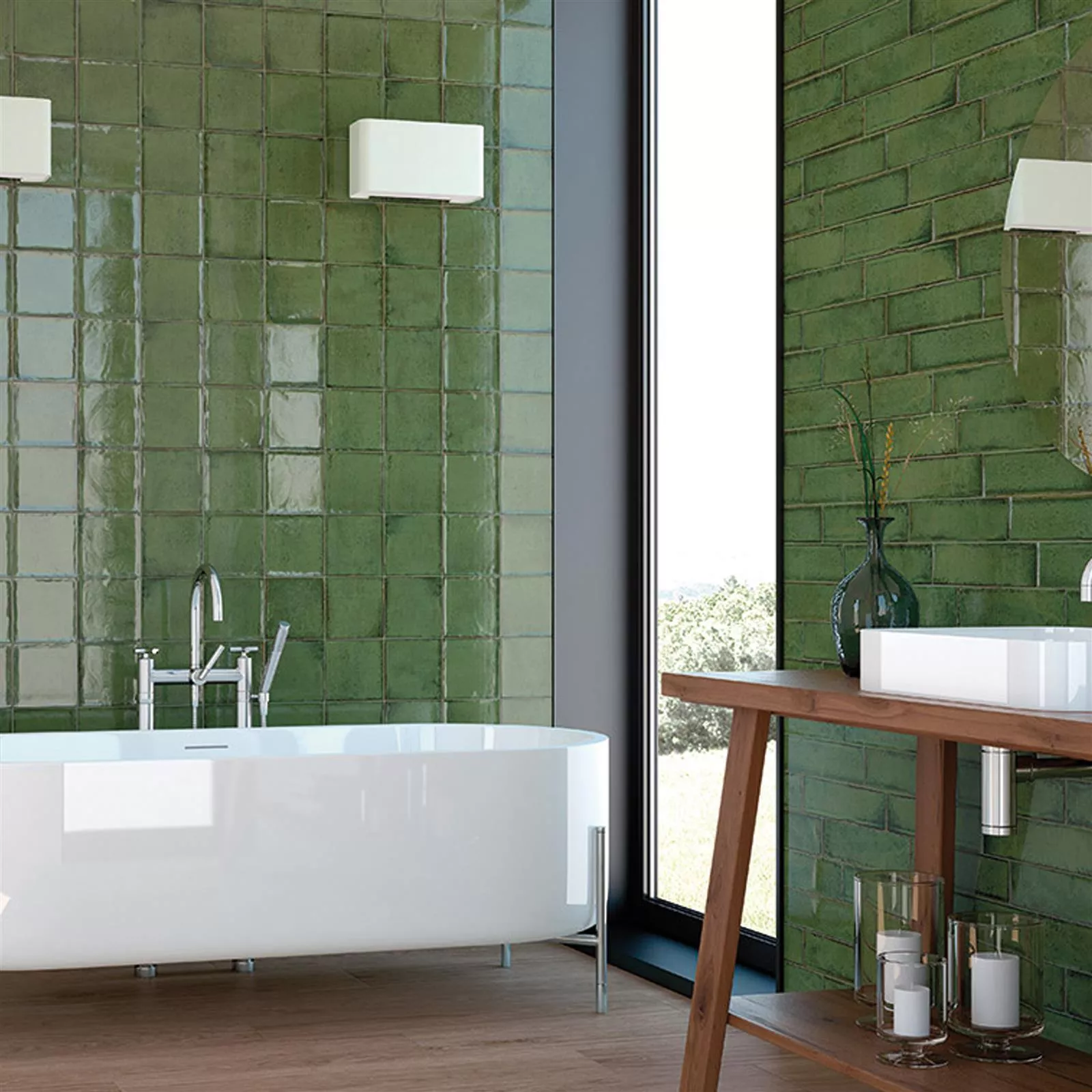 Sample Wall Tiles Maestro Waved Glossy Olive Green 15x15cm
