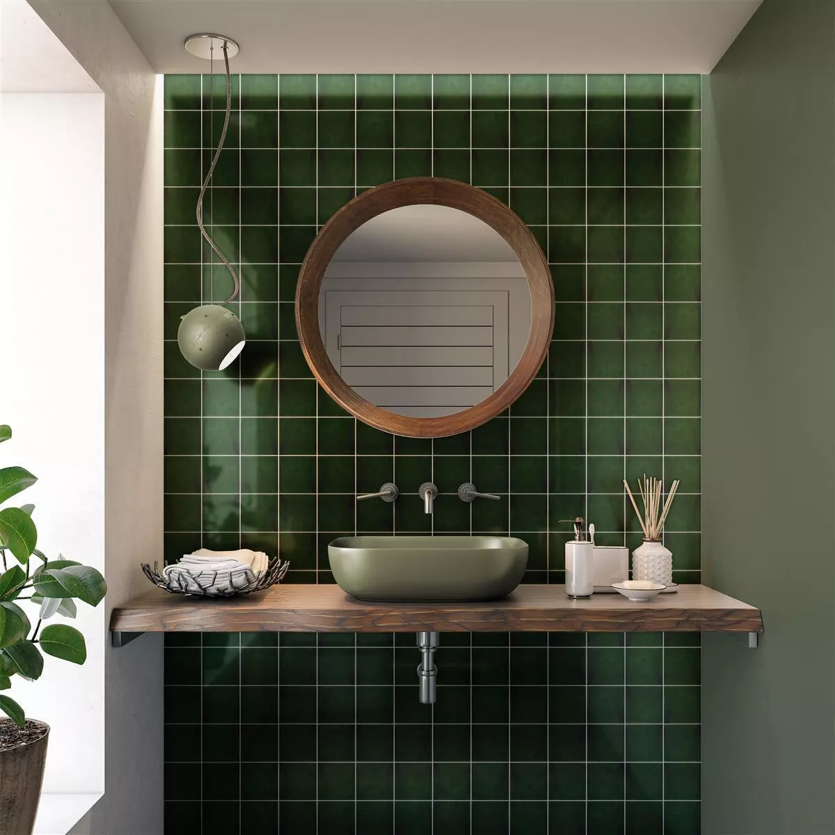 Sample Wall Tiles Tamaris Eloy Glossy Waved Dark Green 13x13cm