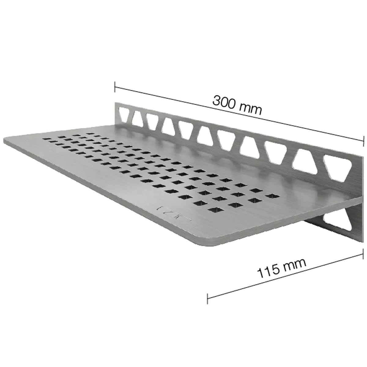 Rectangular wall shelf Whether in the bathroom or kitchen: The rectangular Schlüter-SHELF-W shelf can be used anywhere on the flat wall area where you are laying your tiles. Thanks to trapezoidal perforated mounting legs, the shelves are extremely stable and resilient, but at the same time they also impress with their modern look. You can not only choose between five attractive designs, but also between brushed stainless steel and aluminum, the latter of which is powder-coated in a popular TRENDLINE color or a MyDesign RAL color.
