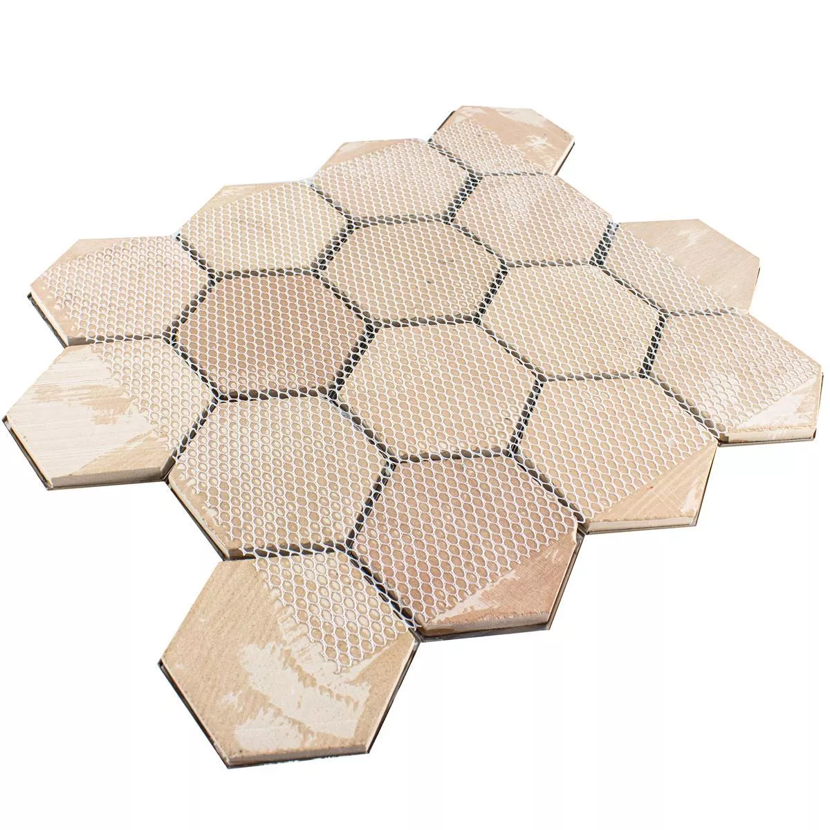With a stone size of 73x84mm and a tile size of 25.7x29.7cm per mat, these mosaic tiles offer a versatile design option. They can be used as a full wall covering or as an accent to create interesting visual accents. The recommended joint width of 2mm enables the tiles to be clearly demarcated and at the same time emphasizes their hexagonal pattern.