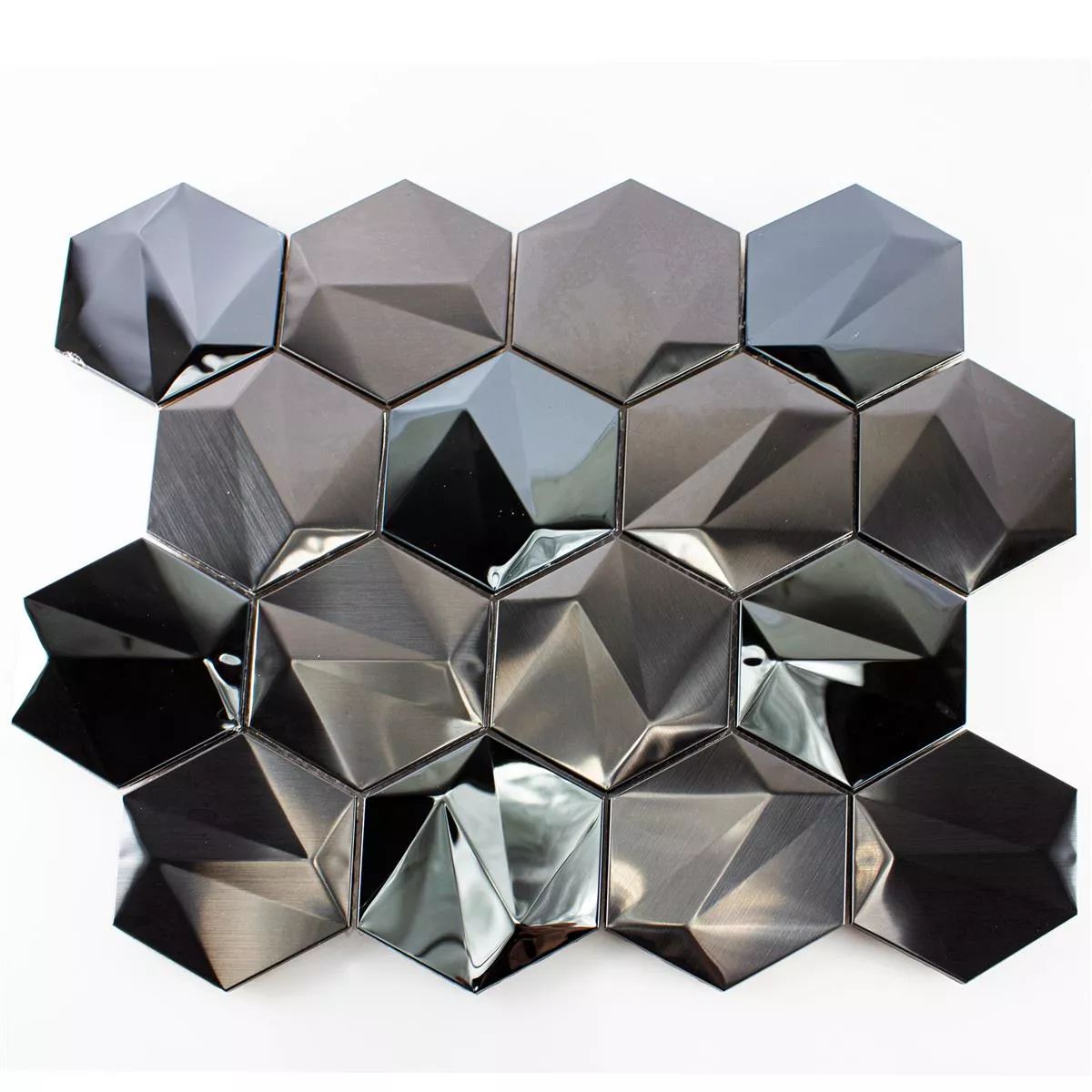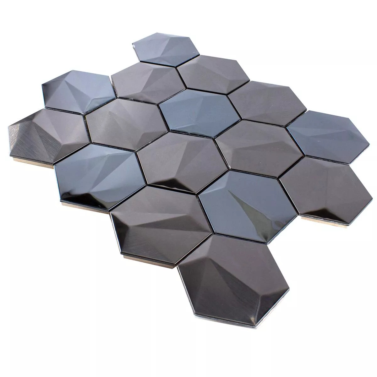 The stainless steel mosaic tiles Durango Hexagon 3D Brown are not only aesthetically pleasing, but also extremely durable and resistant. Constructed of high quality stainless steel, they resist wear, moisture and staining. This makes them an ideal choice for high-traffic areas such as living rooms, kitchens and bathrooms.