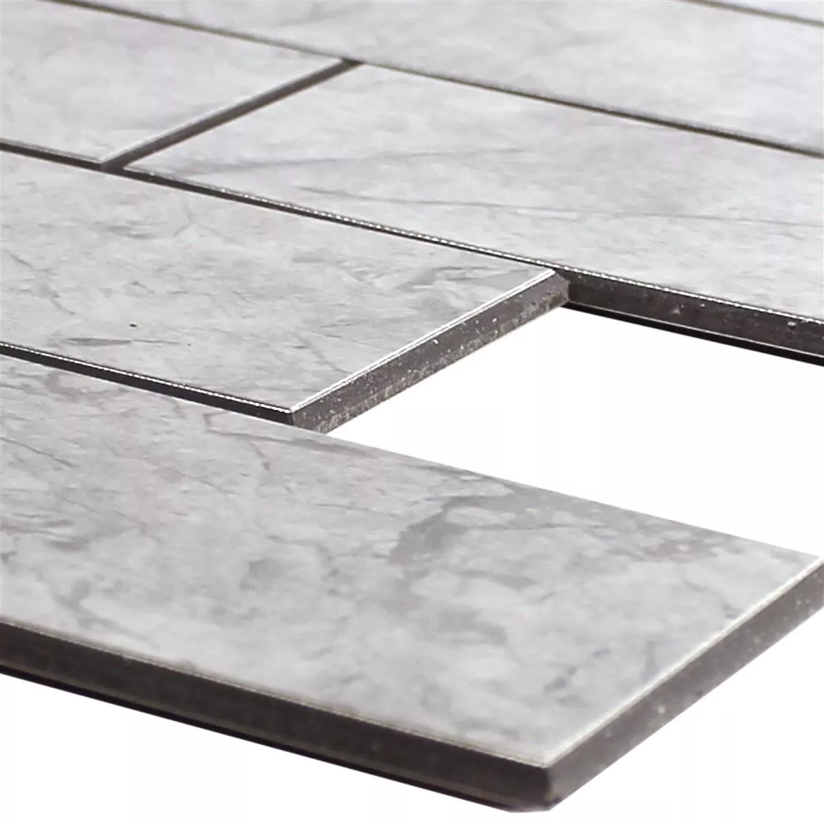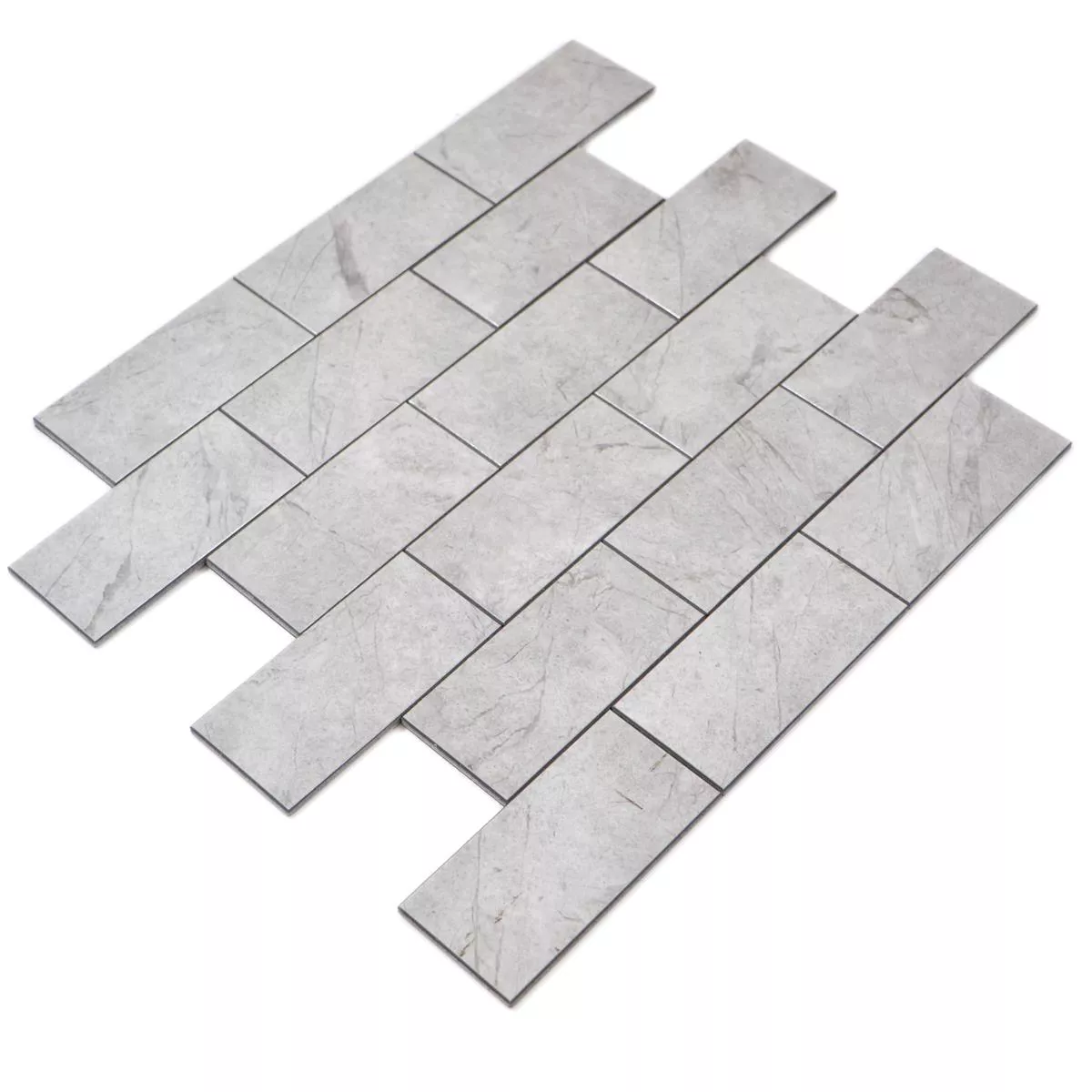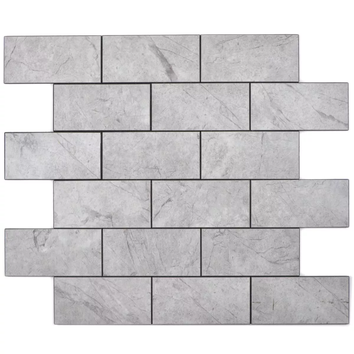 The mosaic tiles are made of vinyl and have the dimensions 49 x 98 mm. They are 4 millimeters thick and have a matt surface. The gray tiles are self-adhesive, so they can be easily laid to form a mosaic. They are glued to a mat. The rectangular vinyl mosaic tiles are suitable for laying as wall and mosaic tiles. They enable the design of an individual room ambience without a tiler.