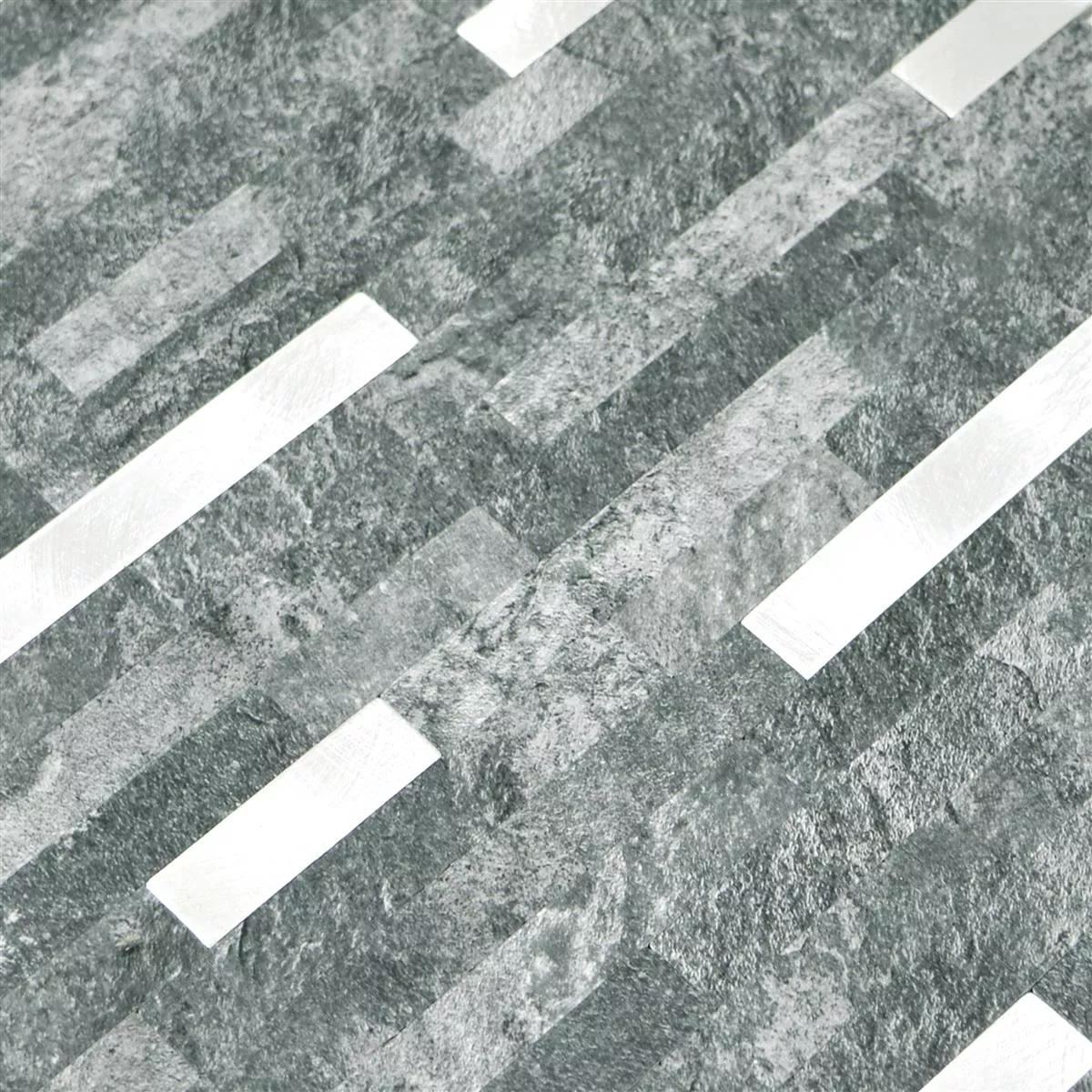 The tiles are made of aluminum and are black and silver in colour. The diversity of the mosaic tiles ensures a beautiful individuality.