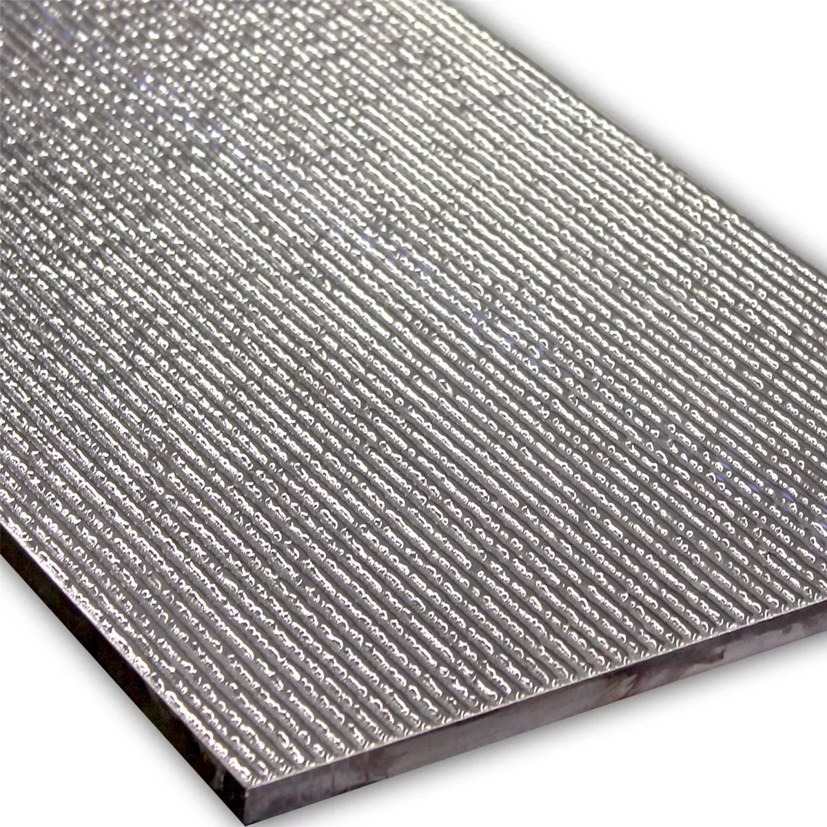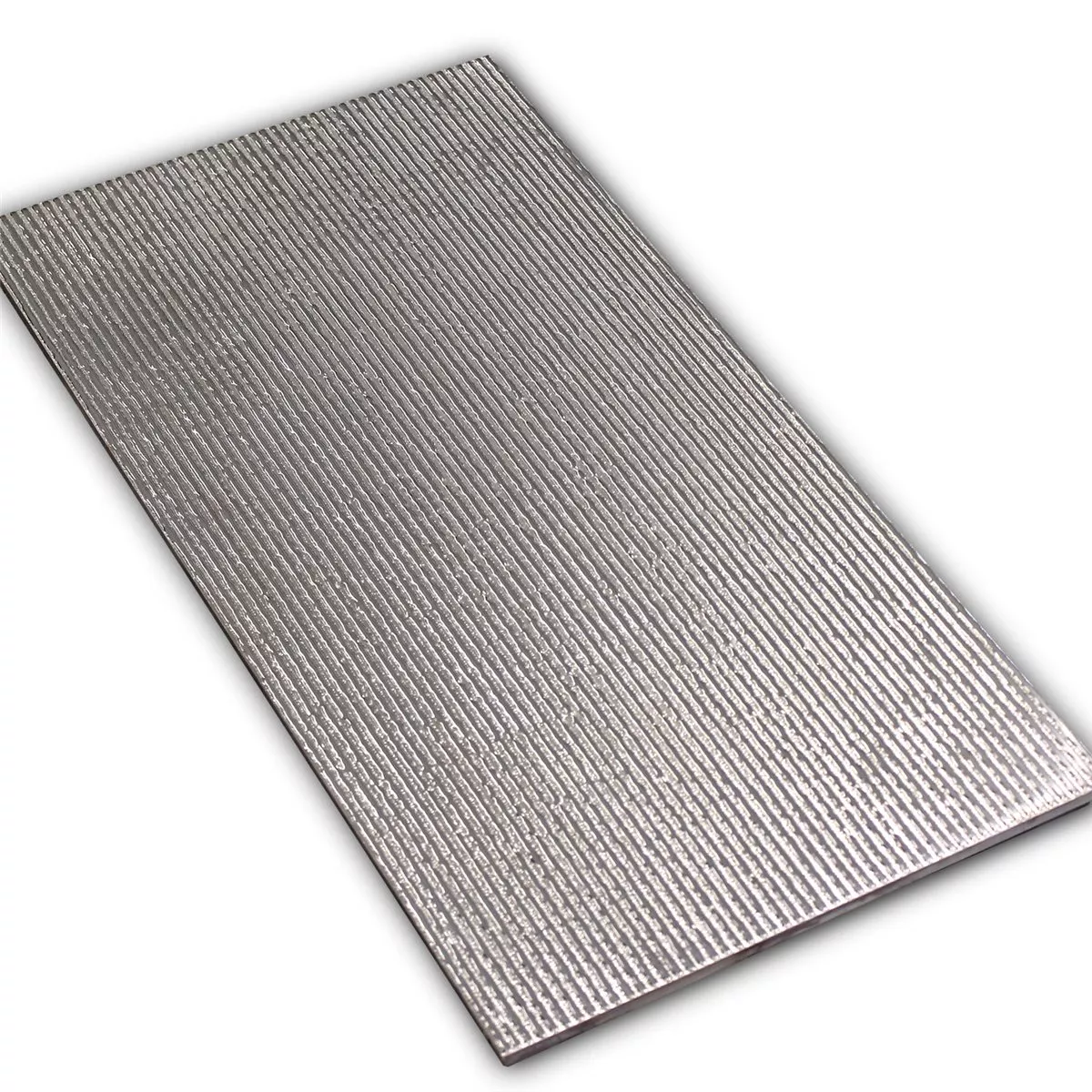 The wall decor tile is available in the color silver and has a shiny ribbed surface. The wall tile is available in the size 30 x 60 cm. The thickness is 10 mm. The wall tile is also calibrated. Wall tiles can be laid in many areas of the home.