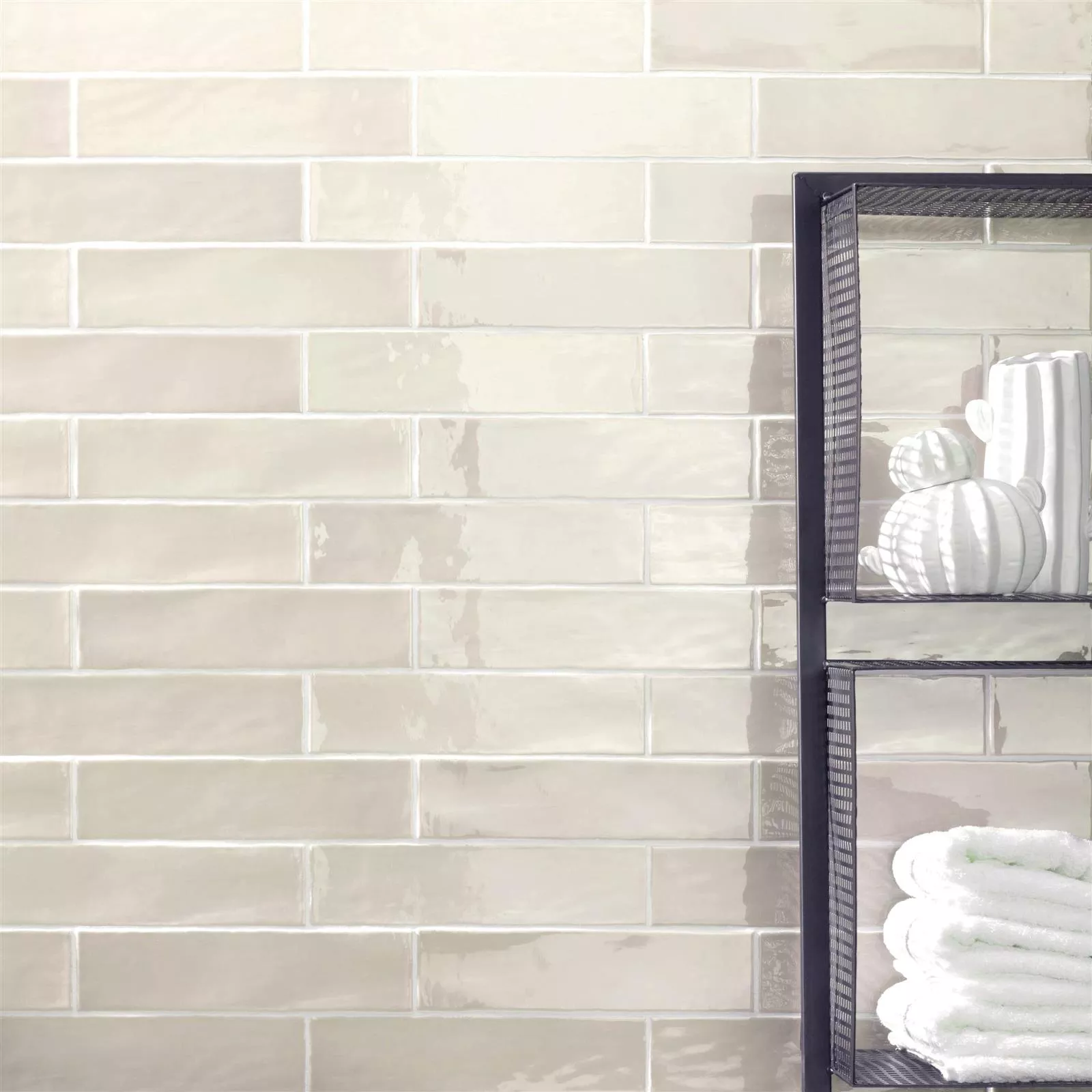 With its light gray color, the tile blends easily into different furnishing styles and gives the room an elegant and timeless atmosphere. The glossy and wavy surface of the tile also gives it a certain liveliness and depth that reflects the light in the room and creates a dynamic effect.