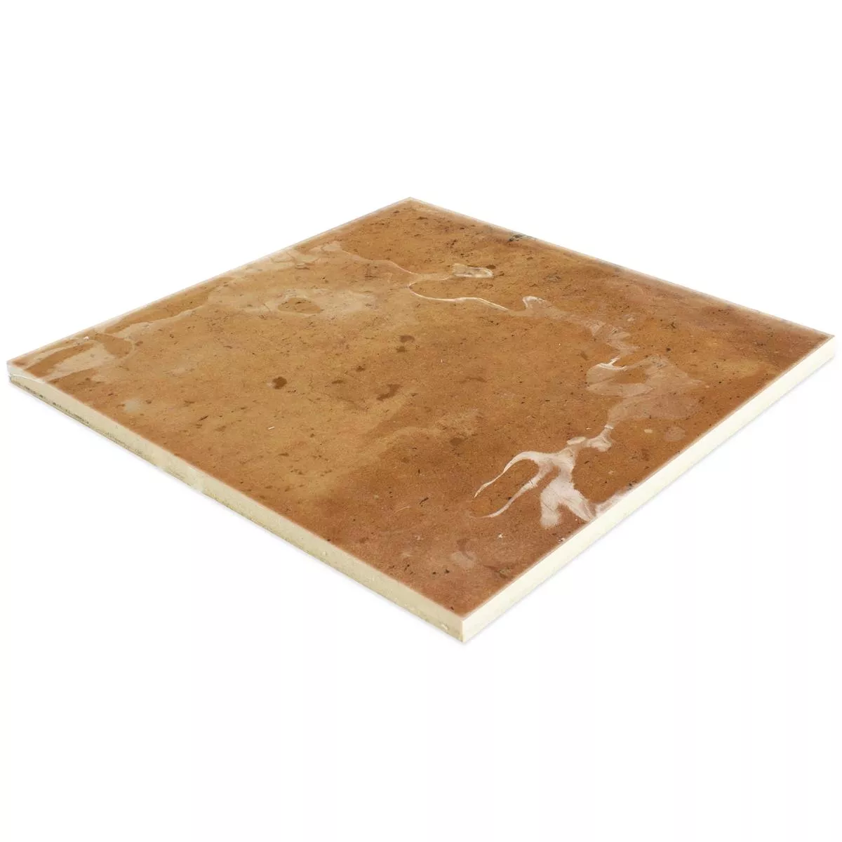 The Kiowa wall tiles in the warm ochre colour combine rustic elegance with modern functionality and are ideal for a wide range of applications. Made from high-quality stoneware, these tiles have a glossy, wavy surface that reflects light in a vibrant way and gives rooms a warm, inviting atmosphere. The non-rectified natural edge contributes to the authentic vintage look, while the frost resistance underlines the robustness and versatility of the tiles.