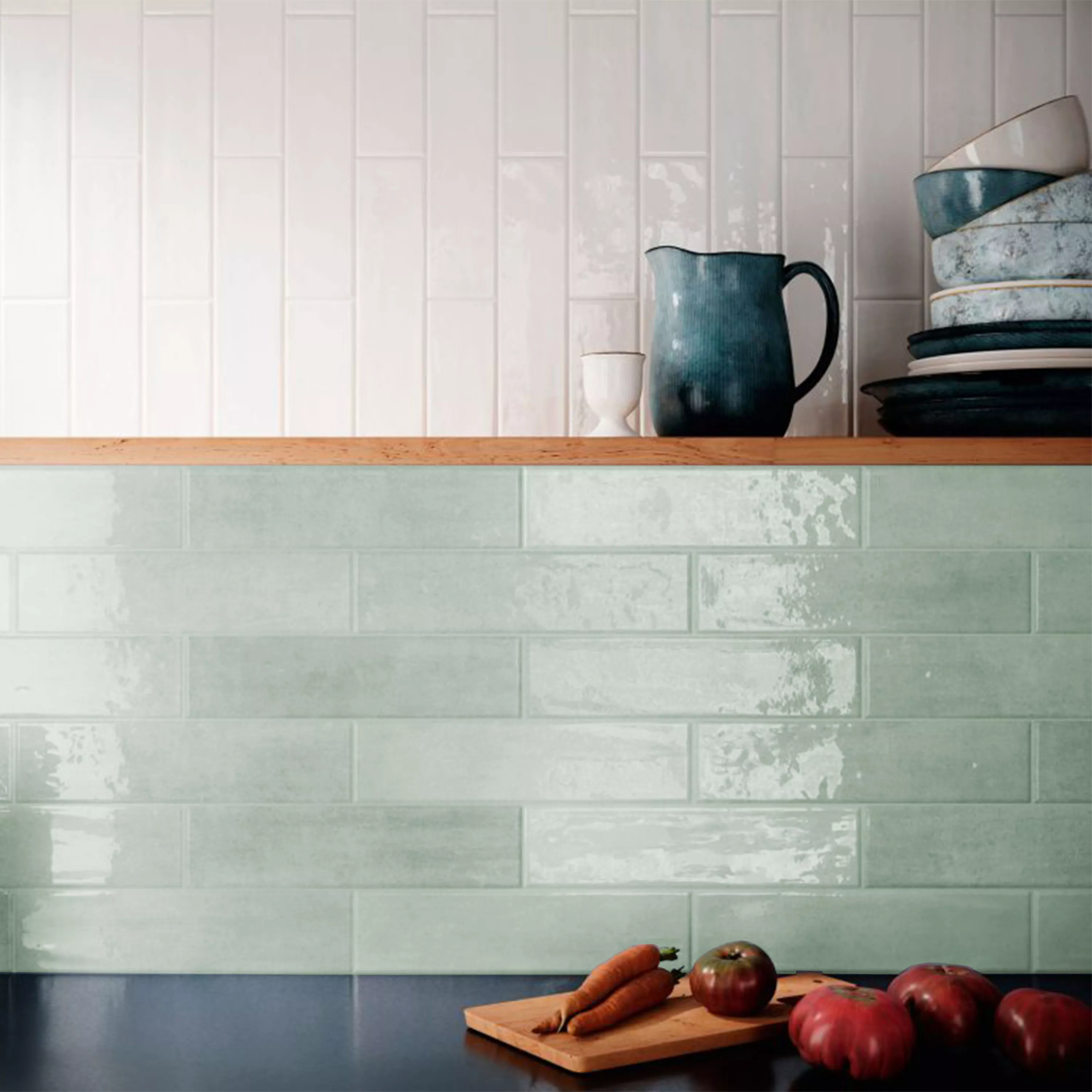 Give your walls a fresh touch of nature with our Tropea wall tiles in glossy green and wavy structure. These glazed rectangular tiles measuring 7.5x30cm and 8.4mm thick bring a vintage aesthetic to your home. The wavy, glossy surface gives your rooms a subtle dynamism and creates a lively ambience.