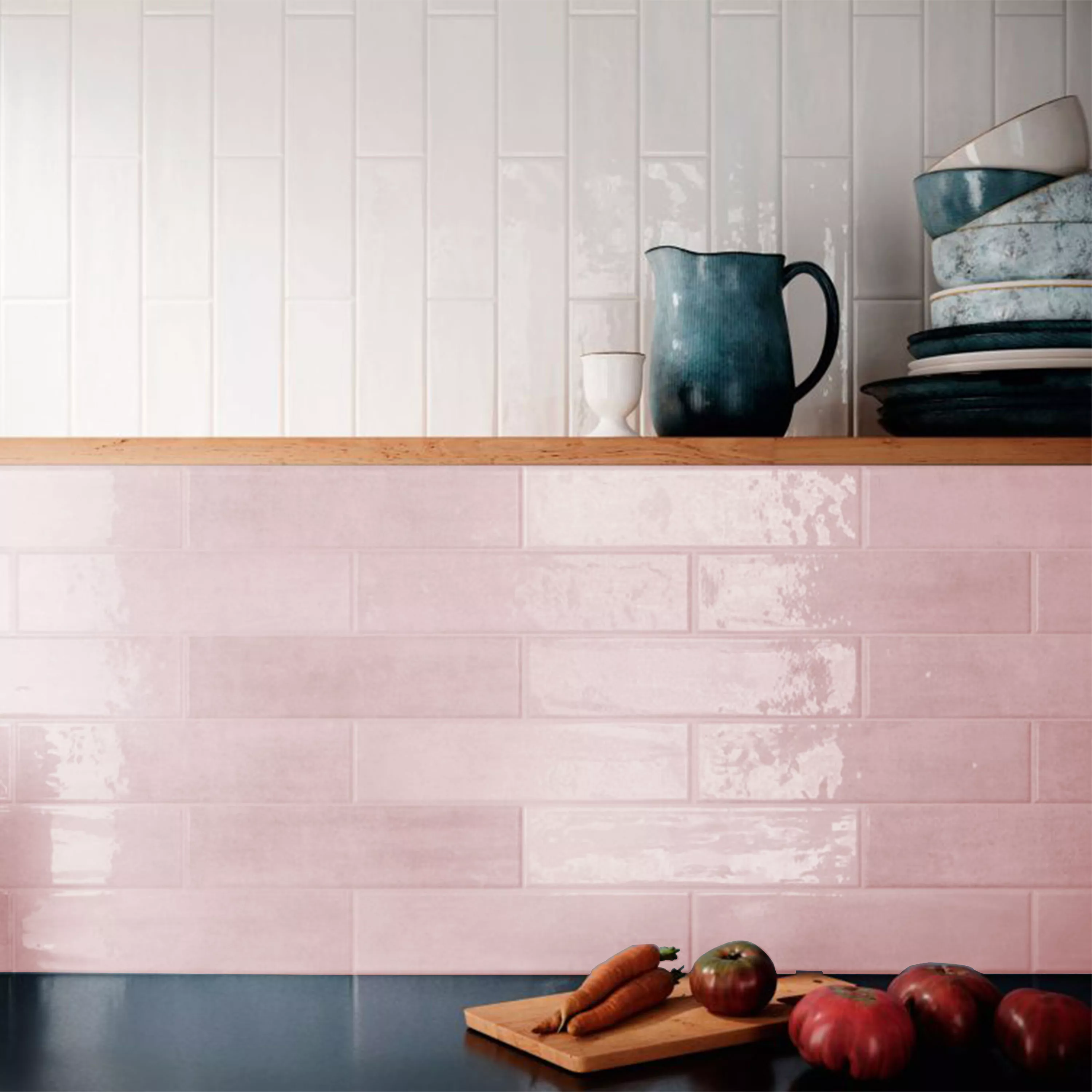 The Tropea wall tiles in glossy pink and with a wavy structure give your walls a charming vintage touch. These glazed rectangular tiles measuring 7.5x30cm and 8.4mm thick bring a unique aesthetic to your home. The wavy, glossy surface gives your rooms a subtle dynamism and a touch of elegance.