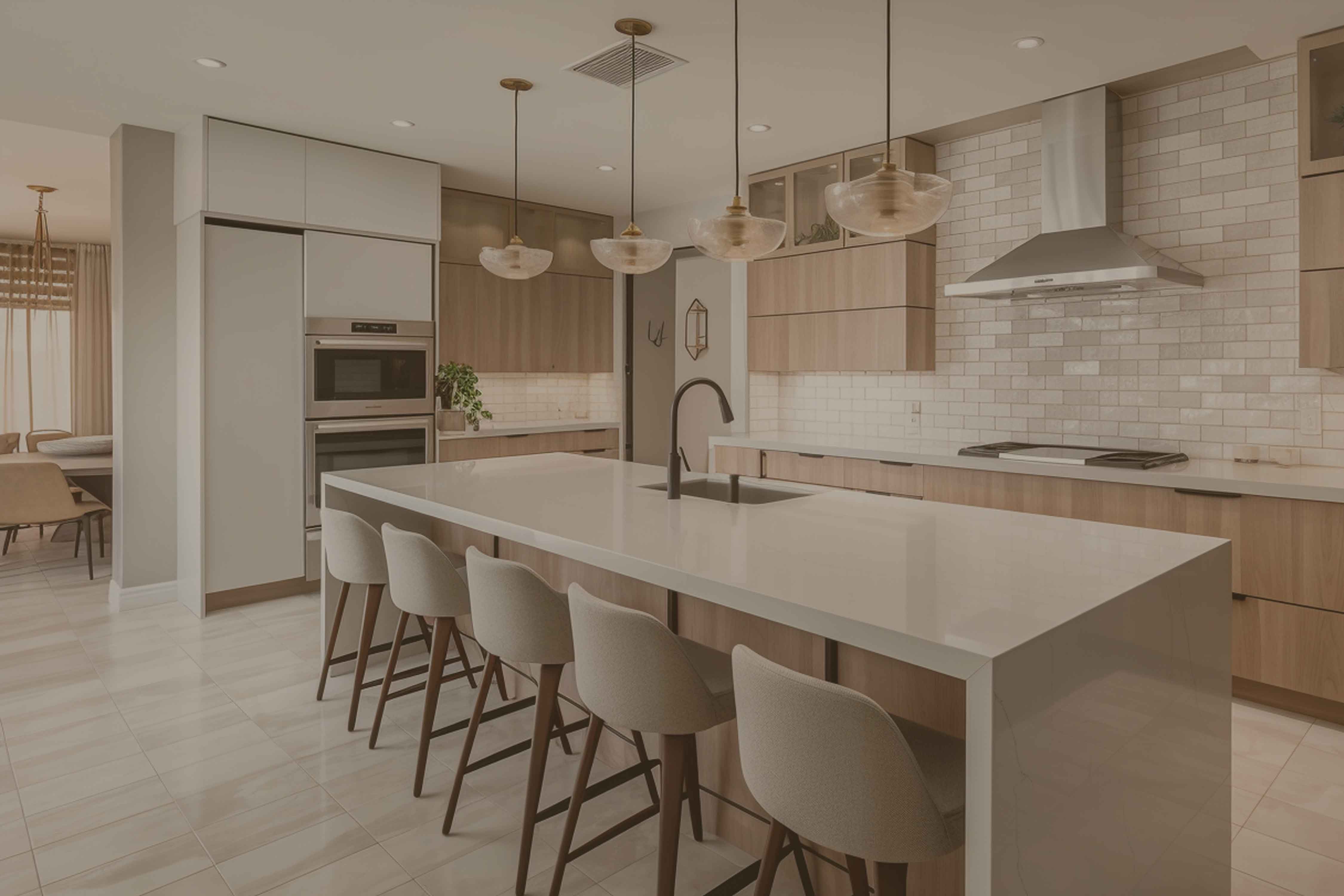 When choosing countertops and wall tiles in a sand-colored kitchen, you can choose harmonious colors and materials, as sand is a warm and natural color palette. What is particularly noteworthy in a sand-colored kitchen is that the colors are balanced and the design appears warm and inviting. When choosing countertops and wall tiles, make sure they reflect the atmosphere and style you want for your kitchen. Before you decide, consider looking at sample tiles or swatches to see how the colors work together.